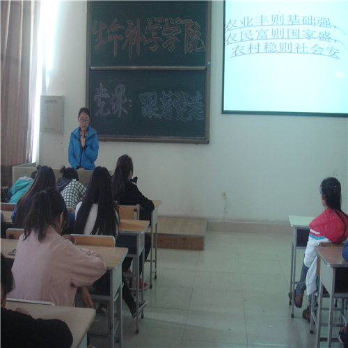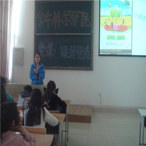 (本报讯张晓芬)为积极推进党建活动,让同学们更好的了解我们的党,努力向党靠拢,生命科学公司于2014年10月15日下午在主楼115开展了党课专题讲座——跟着党走。本次讲座的主讲人为12级员工党员武庚风同志,13级积极分子出席了本次讲座。