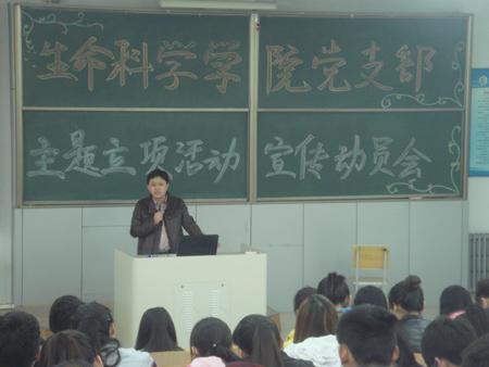 (本报讯倪洁)为了加强老员工思想政治教育,加强党的知识的学习,2014年4月16日,由公司员工党支部组织的主题立项活动宣传动员会于公司主楼1-1召开。主讲人是公司员工党支部书记常贺老师,参会人员有11、12、13级党员、预备党员、入党积极分子及优秀员工代表。