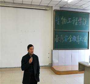 春防安全我先行,倡议承诺我执行。为培养同学们的防范意识,加强自身安全教育,k1体育于2017年3月8日15时30分在计算机楼113召开“春防安全教育大会”。本次大会由生物工程公司党总支书记徐长君主持,莅临本次会议的有校安保处杜处长、k1体育员工党支部书记常贺、生物制药系主任、2014级生物制药一般班主任张志国、16级生物技术二班班主任徐太海老师参加了会议。k1体育全体寝室长、员工会各部部长和副部长、各班班长团支书及班级代表参加了本次会议。