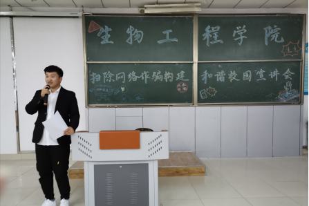 下午18时30分,所有同学于主楼2-1集合完毕,宣讲会正式开始。办公室副主任董雨卓利用诈骗团伙与被害人有趣对话的小品录音为同学们幽默的描述了网络诈骗的具体情节。同学们详细了解了网络诈骗手段。这一环节使同学们在轻松愉悦的情况下熟悉了网络诈骗的惯用套路,增强了同学们的防范意识。