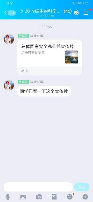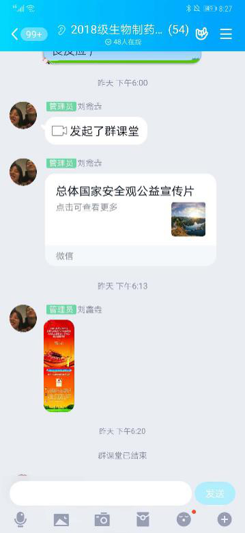 为宣传国家总体安全观,提高全体员工国家安全观念,k1体育于2020年4月15日18时在QQ班级群课堂开展“国家安全教育日”网上主题班会。主持人为各班级团支书,k1体育大一、大二全体同学参加了此次班会。