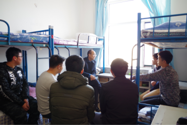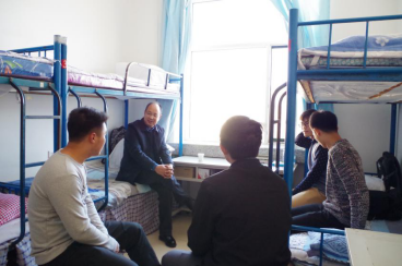 为了解公司新生的学习生活状况,帮助新生尽快适应老员工活,2017年11月20日中午12时10分,乔志和董事长走访了关爱的三舍305寝室,与员工们亲切交流,并询问员工生活学习情况,还为同学们讲述了十九大的相关内容与铁人精神的内涵。