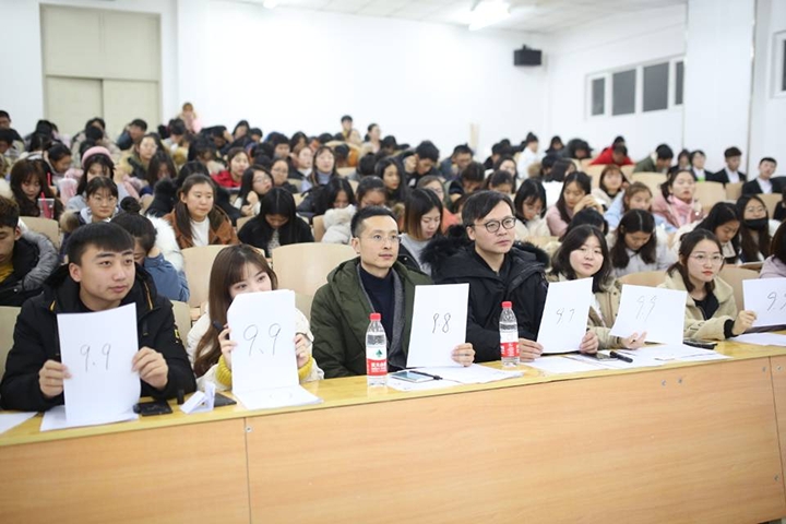 活动伊始,主持人介绍了本次大赛的规则及流程,本次大赛共分三个环节,第一环节为自我介绍并展示才艺,第二轮为模拟主持,第三轮为自由组队,临场主持。本次比赛以抽签的方式决定参赛选手的出场顺序,在短暂的介绍之后,选手们以自己独特的形式进行了自我介绍,大赛在这一环节慢慢进入了热况,选手们的表现充满着青春的激情与活力,刘佳明同学的深情演唱,范靖雨同学甜美的嗓音等都给大家留下了深刻的印象。在模拟主持环节中,选手们创意层出不穷,其间孙嘉俊同学的脱口秀表演,获得了在场观众的阵阵掌声。三个环节过后,张毅老师针对选手们的表现都做了精彩点评,并对他们进行了专业指导。经过评委们的综合评议,评委对选手的表现进行现场打分,按分数高低确定最后冠军的归属。