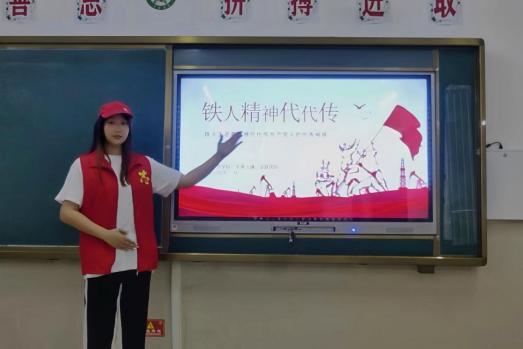 在宾县宾西镇中心小学,实践团成员蔡双一以“铁人精神代代传”为题,讲述了英雄王进喜用生命践行誓言的铁人故事,生动地再现了当时大庆石油会战的艰苦历程,鲜活地阐释了“铁人精神”的丰富内涵。通过理论宣讲,加深了学员们坚定理想、刻苦学习的信念,并表示要朝着梦想,不断奋斗,在扎根龙江,服务地方中贡献自己的力量。
