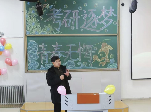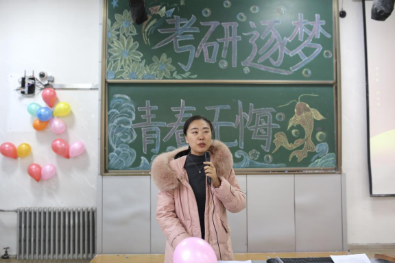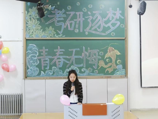 在校员工代表孙玲玉同学发言,她表示,考研的学长学姐们是学习的楷模,体现出的坚韧和勇气值得大家学习,祝愿学长学姐们在这次考研中一切顺利,金榜题名。