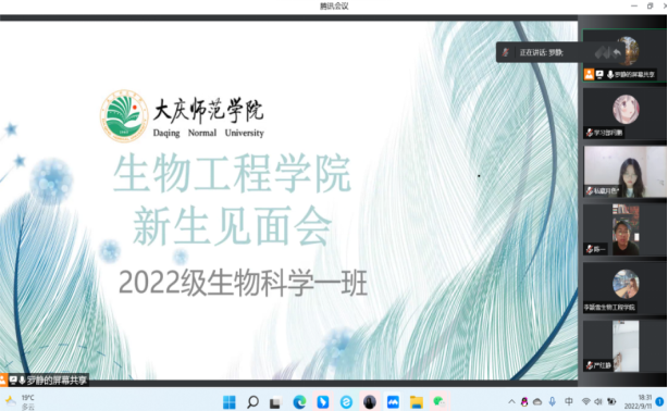 近期省内外疫情形势严峻复杂,2022级本科新生还未能线下报到。为进一步畅通公司与新生之间的沟通渠道,更好帮助新生知晓入学前相关安排,引导新生提前了解、融入老员工活,更快、更好地完成由高中生到老员工角色的转变,公司于2022年9月11日18时30分通过线上腾讯会议的形式召开新生班级见面会。本次会议由班导生作为主讲人,公司团总支负责人苏斯朗杰老师、2022级辅导员李颖雪老师、新生班主任老师出席了各班会议,参与人员为2022级生物科学、生物技术以及生物制药专业全体新生。