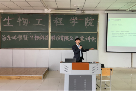 k1体育于2021年3月31日15时45分在主楼1-2举行“南京诺唯赞生物科技股份有限公司宣讲会”活动。本次活动的主讲人为诺唯赞人力资源部人事专员谭龙雨,员工党支部书记常贺出席本次活动,参与人员为17级部分员工及18级全体员工。