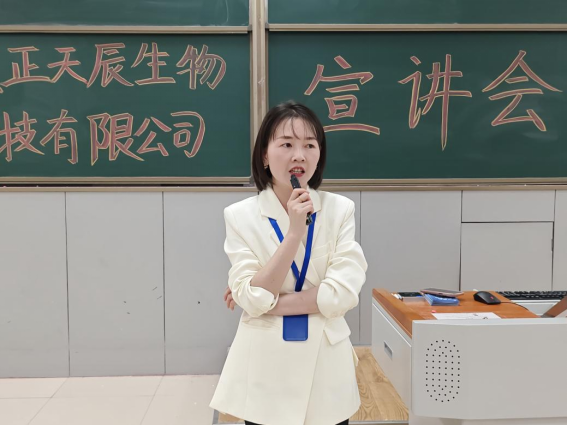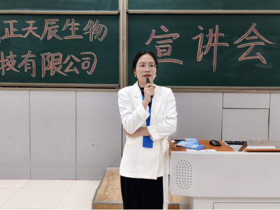 会议伊始,企业招聘经理罗中玉首先向同学们详细介绍了湖北至正天辰生物科技有限公司的发展历程、业务范围和核心竞争力。在介绍公司的同时,罗经理还着重强调了公司对人才的重视和培养。她表示,公司拥有完善的人才培养体系和广阔的发展空间,将为同学们提供良好的职业发展平台。无论是专业技术岗位还是销售岗位,都能让同学们充分发挥自己的才能,实现个人价值。