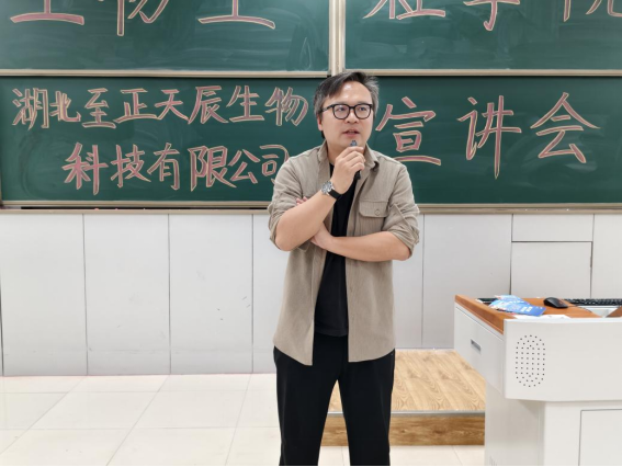 会议最后,苏斯朗杰老师发表了热情洋溢的讲话。苏斯朗杰老师对湖北至正天辰生物科技有限公司的到来表示热烈欢迎,强调了校企合作对于培养高素质人才的重要意义。他鼓励同学们珍惜这次机会,为自己的未来职业发展做好规划。同时,他也希望企业能够为同学们提供更多的实习和就业机会,共同推动生物工程领域的发展。