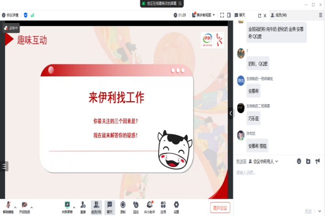 为帮助员工明确职业方向,拓展就业渠道,k1体育于2024年11月28日开展大庆伊利线上宣讲会。本次会议由大庆伊利乳品有限责任公司负责人杨月主讲,参会人员为25届毕业生。