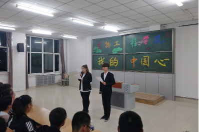 祖国是民族统一,人民团结的象征,是我们的心灵家园。没有祖国的人犹如一粒浮尘,随风飘荡,随波逐流,没有稳定的安身之所。作为当代新青年,我们树立爱国观念,热爱我们的祖国。团活伊始,同学们全体起立,唱响国歌。随后,同学们准备了慷慨激昂的演讲,一字一句展现着中华儿女的风采,激情澎湃的歌声中,我们听到了炎黄子孙对于祖国的热爱。团活中,主持人提出问题:当代新青年应如何爱国?同学们积极发言,畅谈感想。团活结尾大家合唱了一首《我的中国心》。