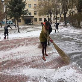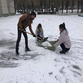 在北风和零下十多度低温中,扫雪工作变得更加艰难。即使手和脸冻的通红,这也丝毫不影响同学们扫雪的激情。热火朝天、干劲十足,分工协作、抵抗寒风。14级在公司党员一马当先走在了扫雪的前列。作为学弟学妹们的15、16级同学也不甘落后,拿起工具低头扫雪,用激情和汗水温暖寒冷的冬天。一个个忙碌的身影在皑皑白雪之中穿梭。大家“你铲,我扫,他送雪”分工协作、团结一心,将激情释放。在大家的共同努力之下,经过两个小时的奋战使得此次扫雪活动圆满成功。此次活动不仅仅让党员与员工干部的先锋模范带头作用,也让他们明白了在日常生活中如何起到榜样的作用。