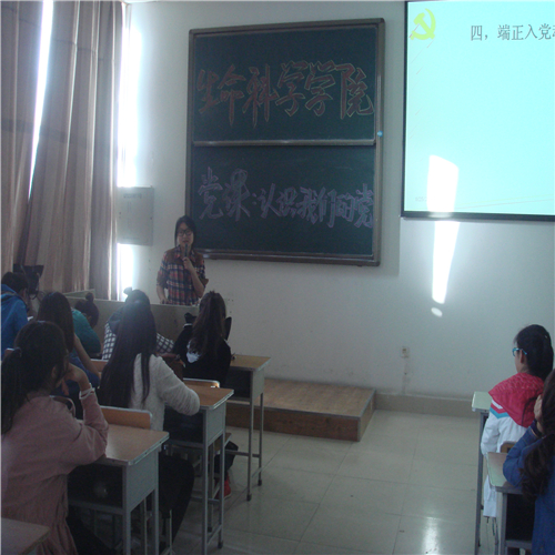 (本报讯张晓芬)为让同学们更好的了解伟大的中国共产党,帮助同学们尽快投入到党的怀抱中,生命科学公司于 2014 年 9 月 24 日下午 在主楼115开展了以“认识我们的党”为主题的党课。本次党课的主讲人为12级员工党员倪洁,13级积极分子和各班优秀员工出席了本次活动。