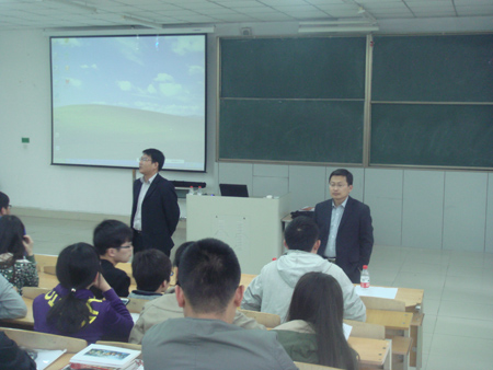(本报讯,丁雨濛)火热五月,又是一年毕业时。就业已成莘莘学子必须面对的问题。2014年5月7日,阜丰集团人力资源部领导毕经理和段主任莅临公司,为公司员工做就业报告和第二届订单班的双选会。下午两点,就业报告在主楼1-1阶梯教室开幕。公司党总支书记徐长君老师参加并主持了会议。生命科学公司、化学化工公司、物理与电气工程公司、外国语公司的员工共有160人参加了会议。
