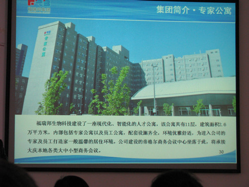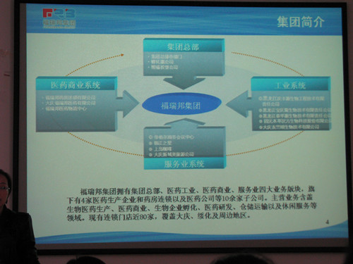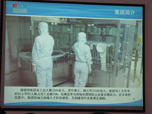 福瑞邦集团人力资源部谢坤经理给应聘员工做了一场生动的报告,她详细地介绍了公司发展的历程及未来规划,还详细讲解了公司四大平台、六大药厂及80余家连锁药店的经营模式、管理方法和对外合作情况。此外还介绍了福瑞邦的薪资待遇、工作资源、生活条件。谈到我们13届毕业生在福瑞邦的工作状况,谢经理和孙主任是大加陈赞!