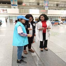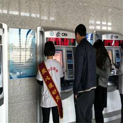 志愿者帮助旅客取票