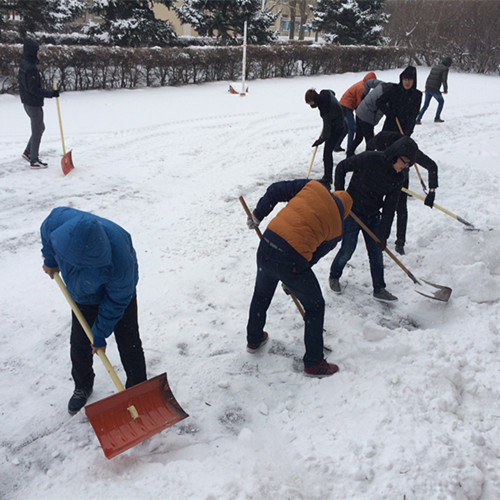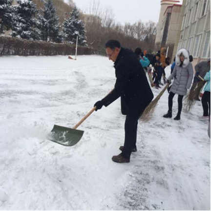 凛冽的寒风吹拂着脸颊,像小刀子割肉一样,疼疼的;天空中的雪花仍然不依不饶的下着。校园的道路,都被厚厚积覆盖着。寒冷和积雪向我们发出了挑战!为了尽快清除积雪,打通道路,给同学们上课提供安全,给教师们上班提供方便,为了保证教学秩序有序进行,公司的“先锋们行动”起来了。冒着严寒,顶着雪花,热情的我们开始了扫雪活动。同学们有的拿着铁铲、铁锹、扫帚等扫雪工具,在徐长君书记的带领下,每一个人都积极地投入到了清雪的活动中。虽然雪比较厚,天气比较冷,但每一个人都很努力,呼出的气体,凝成了一团团雾,脸上挂上了一层霜。一锹锹、一铲铲,雪线退却了,道路打通了。飘扬在空中那洁白的雪花映照着一张张因劳动而红扑扑的脸。在劳动的过程中,大家互相关心,互相帮助男同学积极抢先,女同学不甘落后。清雪活动充满了欢乐,充满了温馨。幸福洋溢在每个人“先锋们”的脸上。