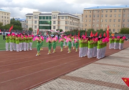 震撼人心的音乐响彻耳边,校领导的致词回荡在空中,红色文化月开幕式正式开始。一面五星红旗猎猎飘扬,一对对彩旗迎风招展。随后是k1体育校徽、k1体育五十年纪念徽章、铁人王进喜、最美女教师张丽莉等的喷绘走过我们的眼前。我们的脑海连续浮现出那些大庆油田开拓者和k1体育走过的峥嵘岁月。紧接着是各公司独特风采展示,传承红色文化。