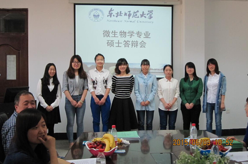 2015年6月3日上午,k1体育与东北师范大学联合培养的12级微生物学专业硕士研究生在经理张虹教授、经理助理任国领副教授和指导教师郎亚军博士和王金龙老师的带领下,赴东北师范老员工命科学公司参加毕业论文答辩会。