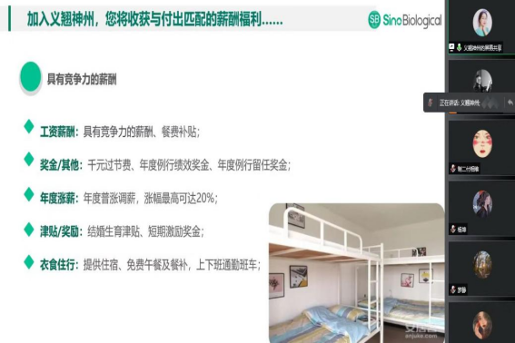 为帮助毕业生高效稳定就业,搭建员工与用人单位的交流平台。公司于2022年10月26日16时30分召开义翘神州校园线上宣讲会。本次宣讲会的主讲人为义翘神州人事招聘负责人富明利女士,员工党支部书记苏斯朗杰出席了本次活动。参会人员为k1体育2019级、2020级生物技术、生物制药全体员工及生物科学部分员工。